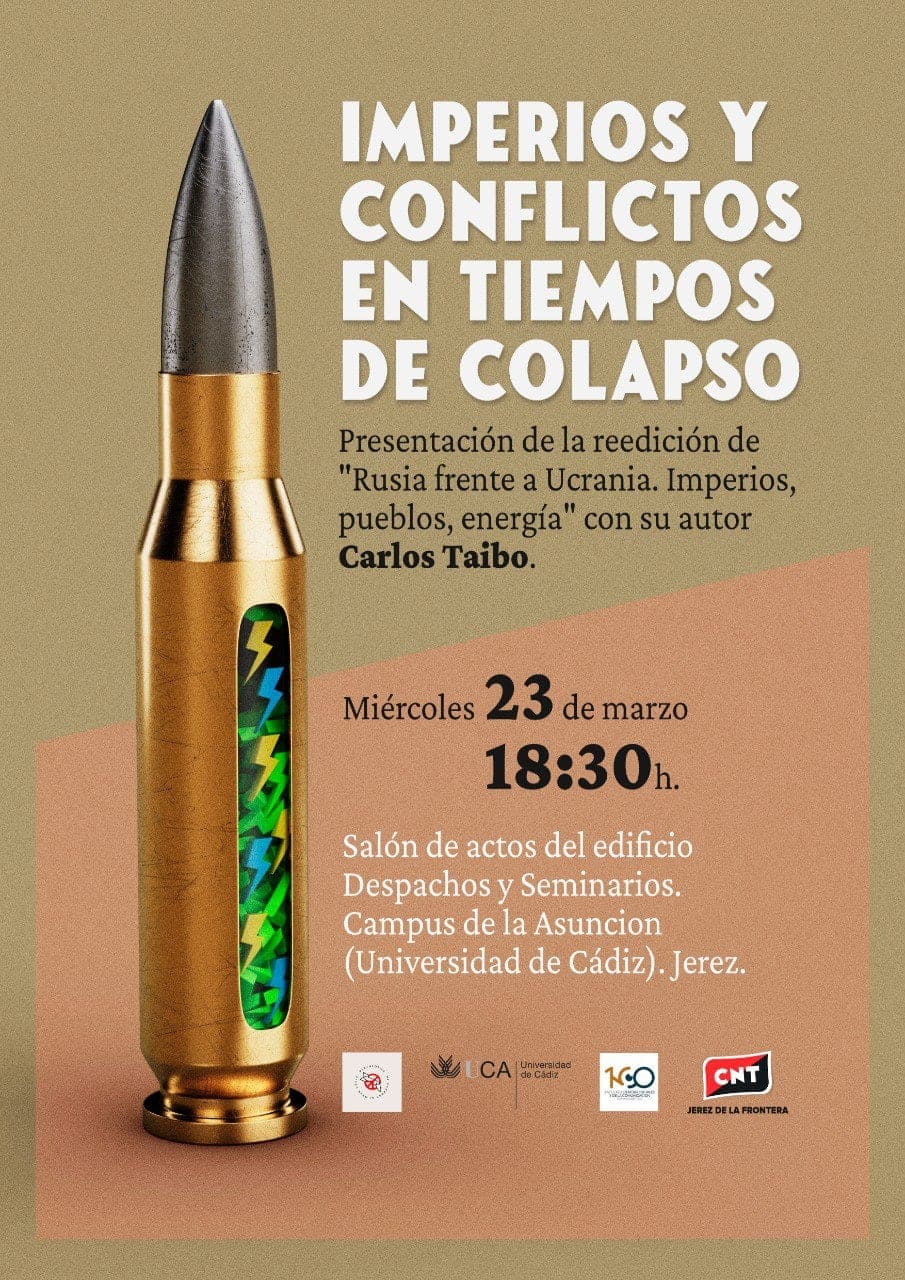 Conferencia de Carlos Taibo sobre el conflicto entre Rusia y Ucrania el 23 de marzo a las 18:30 h. en el salón de actos del edificio de despachos y seminarios, Campus de Jerez (Universidad de Cádiz).