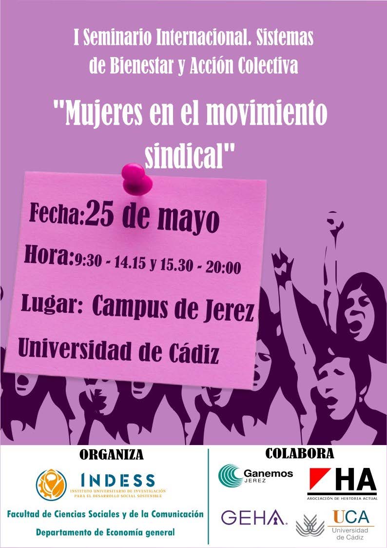 El viernes 25 de mayo tendrá lugar el I Seminario Internacional de sistemas de Bienestar dedicado a la participación de las mujeres en la acción social, concretamente en el movimiento sindical.
