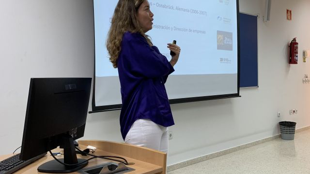 La primera intervención profesional en el máster corrió a cargo de Blanca Dominguez Delgado, directora en Sevilla de la Cadena de Hostels TOC, el día 25 de octubre con un seminario sobre la aplicación práctica de las estrategias competitivas.