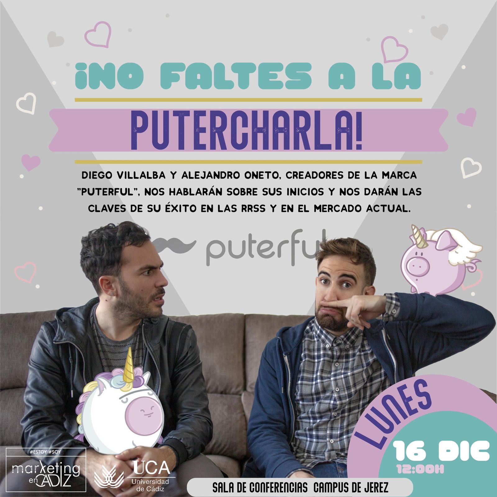 En ella, Diego Villaba y Alejandro Oneto, creadores de la marca “Puterful”, hablarán sobre sus inicios y sobre las claves de su éxito en las Redes Sociales y en el mercado actual.