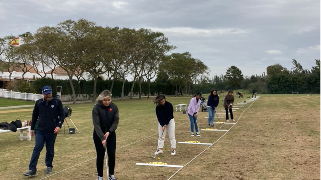 Después del seminario, los estudiantes se adentraron en el campo de prácticas en el que presenciaron una exhibición del profesional del campo D. Ángel Rendón. Posteriormente, a pesar de las incidencias climáticas, recibieron una primera clase práctica de iniciación al golf y pudieron disfrutar de la experiencia gracias al esfuerzo y dedicación de todo el equipo de Sherrygolf Jerez.