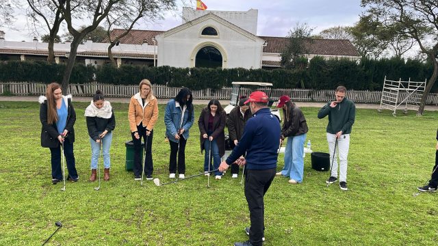 Los alumnos del Máster en Dirección Turística, en el marco de la asignatura de Revenue Management coordinada por el profesor Dr. Antonio Ramos, visitaron las instalaciones de SherryGolf Jerez, donde participaron en un Seminario a cargo de D. Martín Sánchez y de la directora del complejo, Dª Mariluz Gutiérrez. Además, el profesor D. Ángel Rodríguez impartió un clinic de golf en el que los alumnos pudieron iniciarse en la práctica de este deporte.