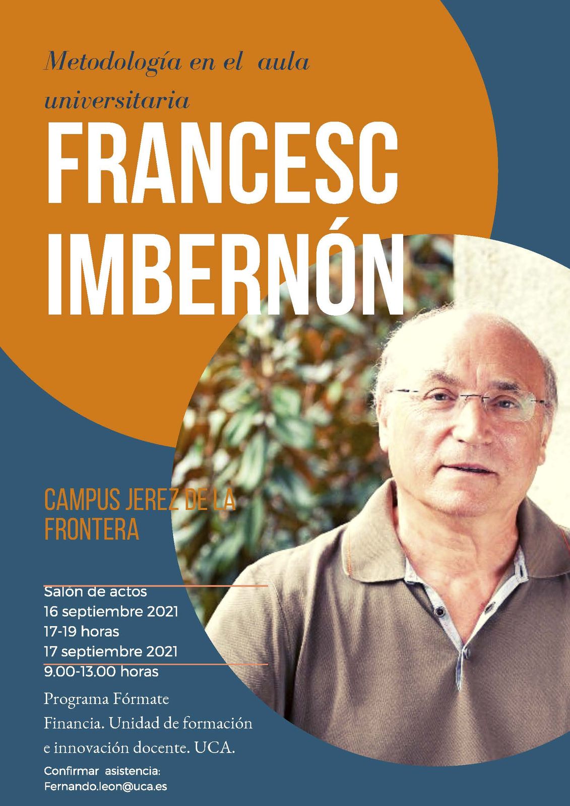 Los días 16 y 17 de septiembre, se desarrollará en el Salón de Actos del Campus el curso Metodología en el Aula Universitaria, que será impartido por Francesc Imbernón.