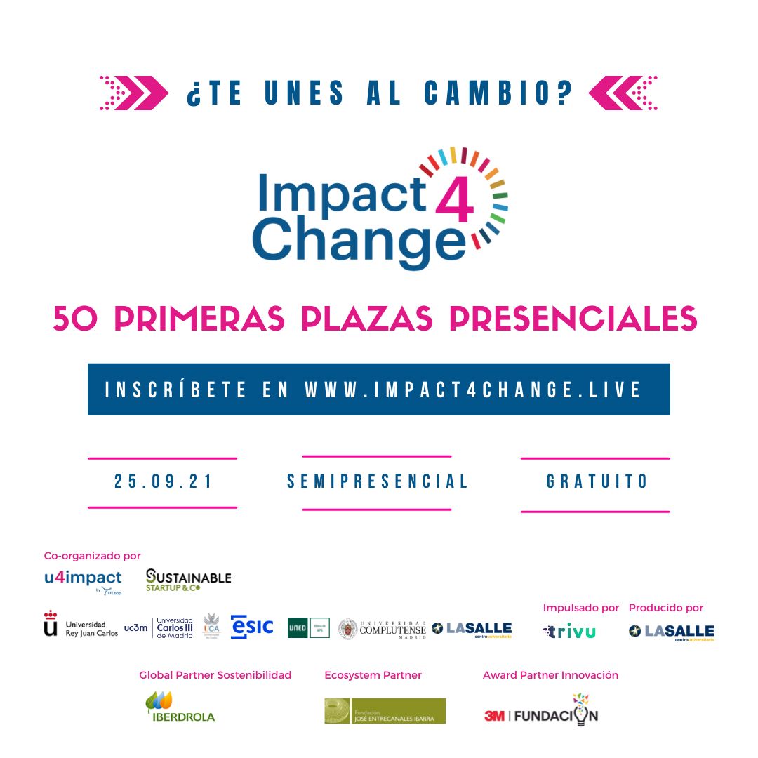 📣 ¡Consigue una de las 50 primeras plazas presenciales! Entra en https://impact4change.live/registro/ e inscríbete.
